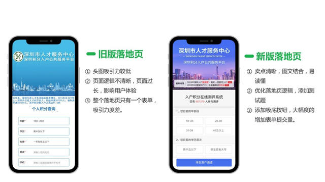 1、针对积分落户这种细分行业,且与政策实时挂钩,紧密相关的,可以在落地页中添加政策资讯入口,一方面是增加目标人群信任感,另一方面是展示自身的专业性。